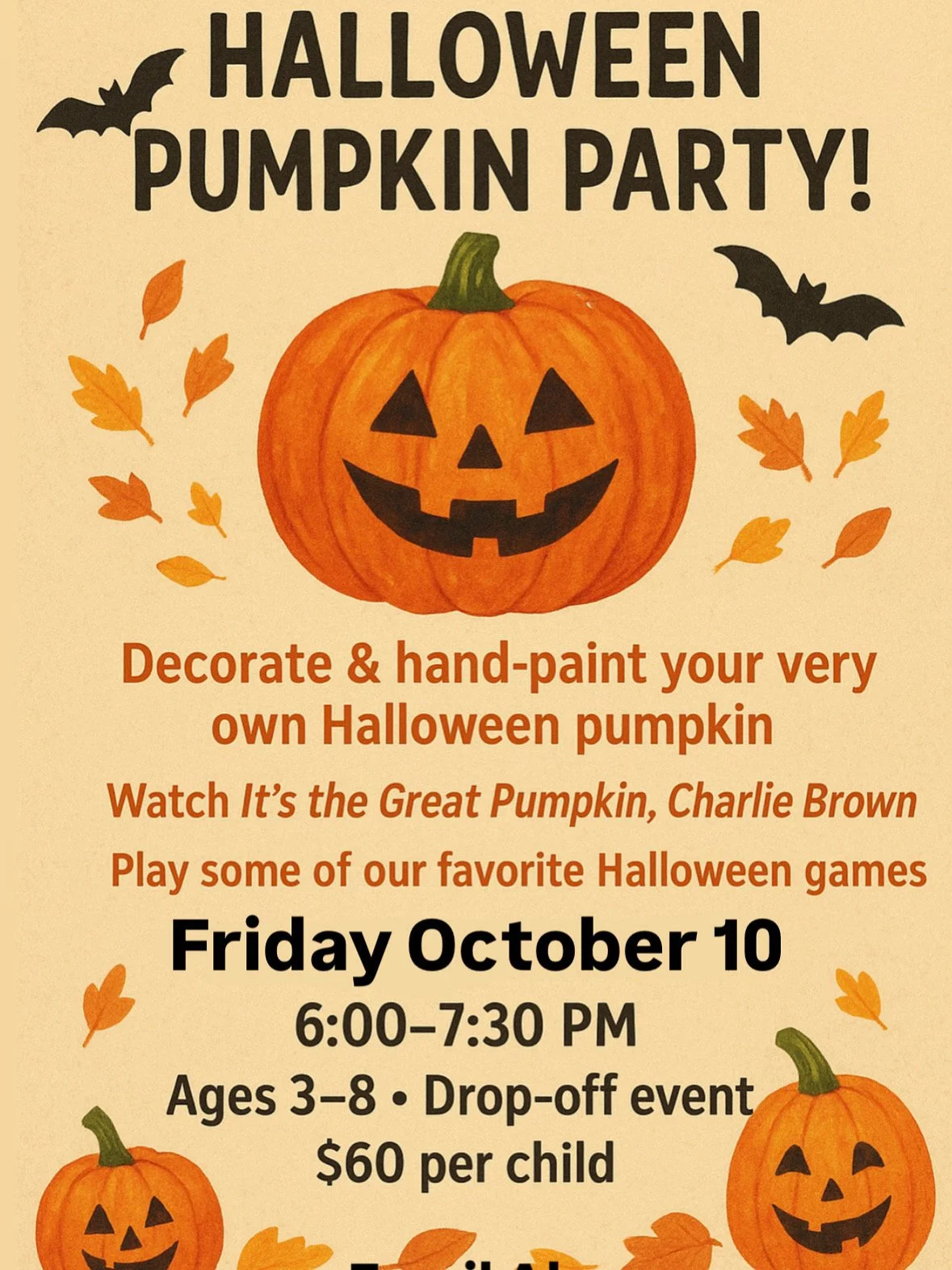 Mark your calendars for Friday, October 10th, and get ready for an evening of pumpkin painting, Halloween movies, and musical fun that captures all the magic of the season. Your little ghouls and goblins will love every minute!